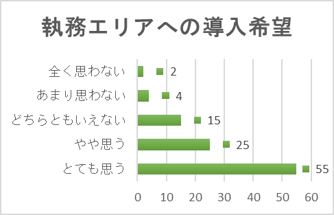 また、共用部だけでなく、自席周辺など執務エリアにも導入したいかという設問では、